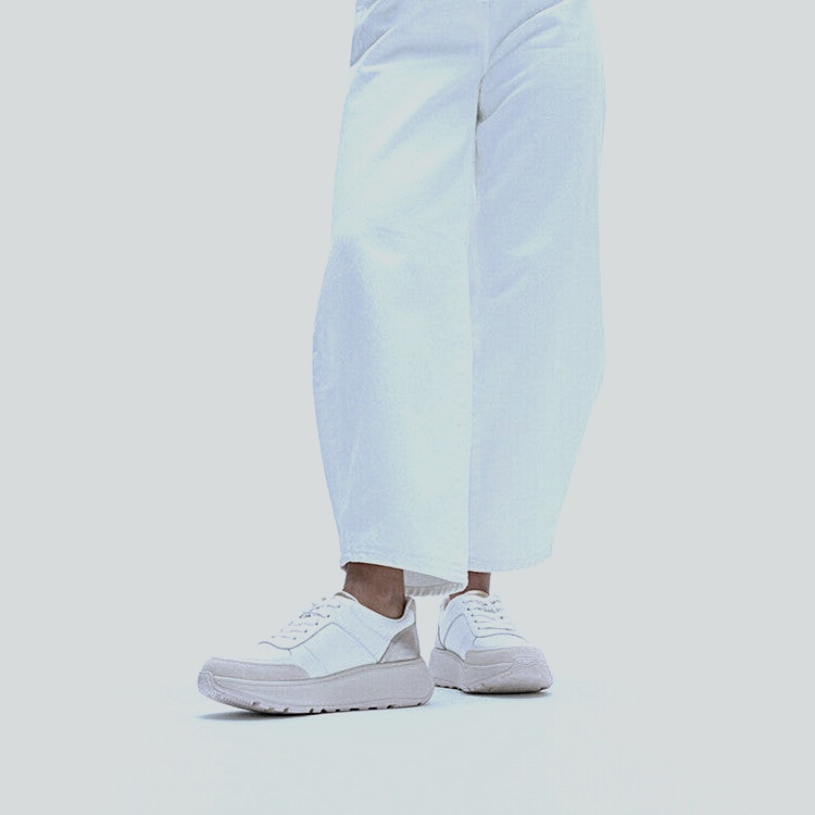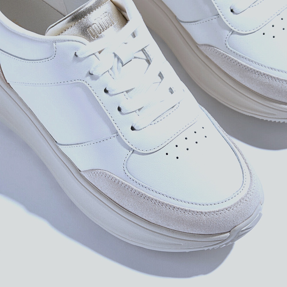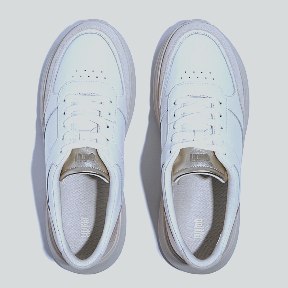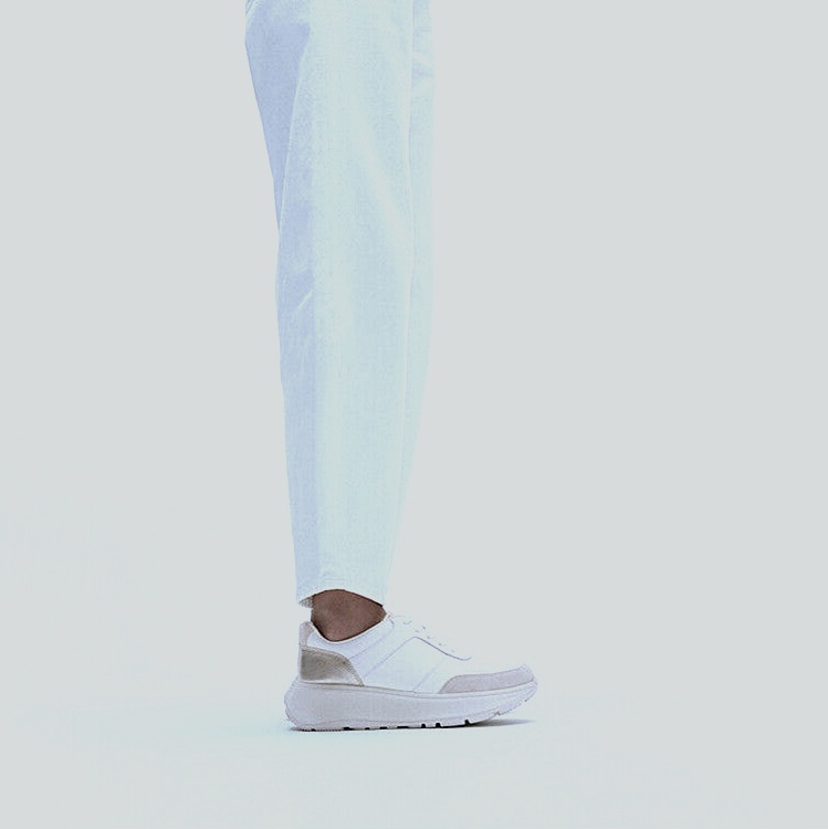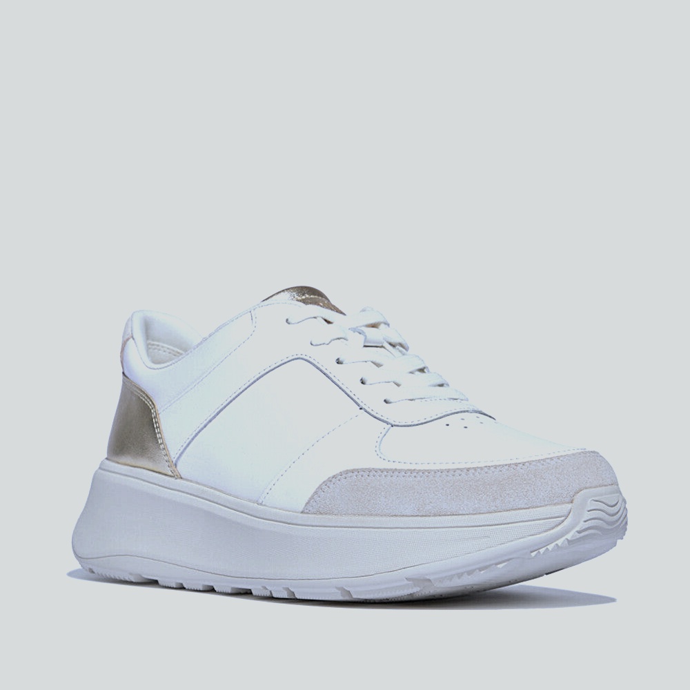 Streamlined lace-up with SmoothCore panels and a GleamGuard heel flash. Elevated yet feather-light platform rides on a CloudGlide midsole that diffuses pressure and supports natural movement. Padded collar and tongue hug the ankle; airflow ports keep things cool. Durable rubber pods deliver confident traction. Finished in Urban White with a Platino shimmer.